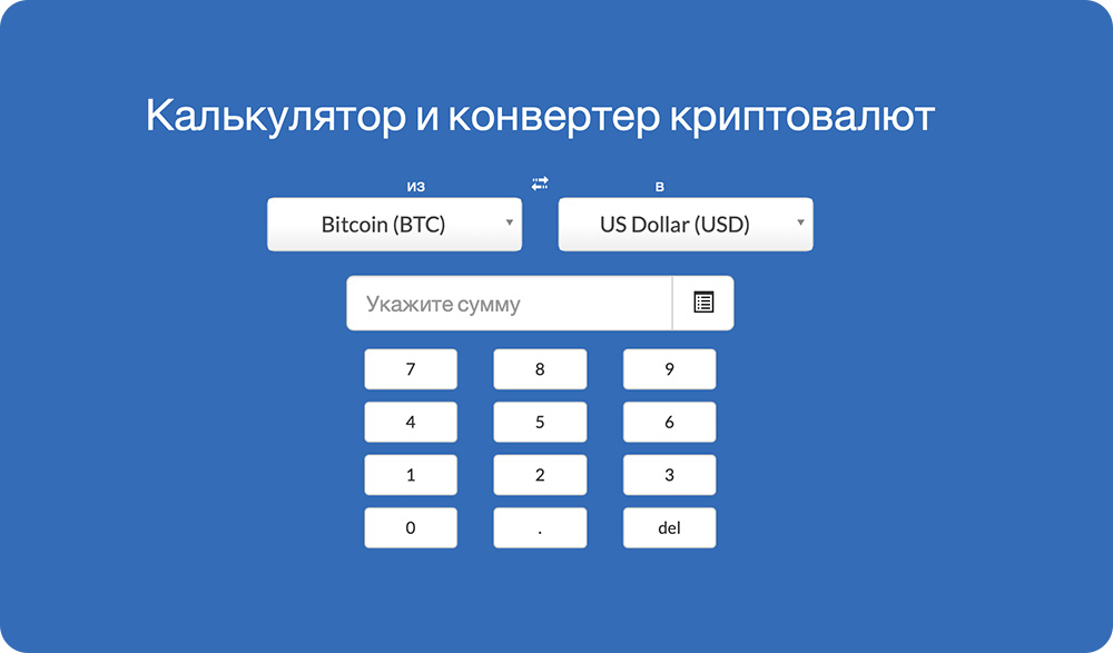 Небольшой калькулятор с возможностью вписать количество криптовалют, которыми вы располагаете. И отслеживать их отдельную и суммарную стоимость в долларах или рублях.